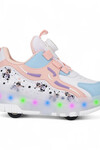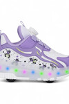 - Purple-white wheeled light-up children's sneakers that combine fun and comfort! The colorful LED lights on the sides shine with every step, giving your child an enjoyable walking or gliding experience.