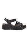 Bej Hakiki Deri Cırtlı Kadın Günlük Topuklu Sandalet PC-54787 Z