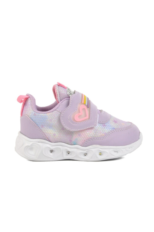 Lila Cırtlı Işıklı Hafif Kız Çocuk Spor Ayakkabı Ruffon B