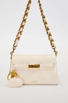 Zarif görünümü modern tasarımla buluşturan kalp aksesuar detaylı omuz çantası özel bir aksesuar seçeneğidir.