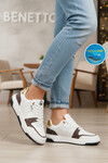 Siyah Beyaz Bağcıklı Cilt Memory Foam Unisex Spor Ayakkabı BNI-12091 G